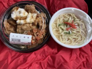 呉屋ストアーさんのチキン南蛮丼¥350でございます。¥100そばもつけました。